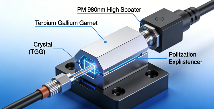 The PM 980nm High-Power Optical Isolator, engineered with Terbium Gallium Garnet (TGG) crystal technology, represents a pivotal advancement in optical component design for high-power, precision photonic systems. Operating at a wavelength of 980±5 nm, this device delivers exceptional isolation (>50 dB), minimal insertion loss (<1.2 dB), and robust power handling up to 100W. This article details its operational principles, key performance parameters, and its indispensable role in applications ranging from industrial fiber lasers to sensitive test and measurement setups.