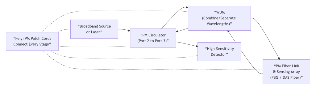 In demanding fiber optic sensing applications—such as Distributed Acoustic Sensing (DAS) , Distributed Temperature Sensing (DTS) , and Interferometric Sensors—the integrity of the optical signal is paramount. At Feiyi Optoelectronic, we offer a tightly integrated solution built around high-performance Polarization-Maintaining (PM) components to ensure your system delivers maximum accuracy and stability.