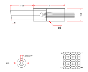 The 49 Fiber Pigtail is a high-density, high-performance fiber optic component designed for applications demanding low insertion loss, wide bandwidth, and excellent polarization-dependent loss (PDL) performance. Featuring an epoxy-free optical path, it ensures long-term stability and reliability. Available in P Grade and A Grade, the pigtail supports key wavelengths including 1310 nm, 1550 nm, and broad-band 1250–1650 nm, and is compatible with SMF-28e single-mode fiber. It is widely used in isolators, circulators, WDM systems, optical sensing, VR, and fiber optic slip rings. Multiple connector options and customizable fiber lengths enable flexible and seamless integration into diverse optical systems.